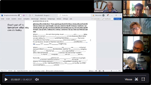 - Il y'aura des réunions en ligne (Webinars) pour parler des cours en ligne sur les temps en anglais à suivre à votre rhythm, et la communauté d'apprentissage d'Anglais Joy of English.